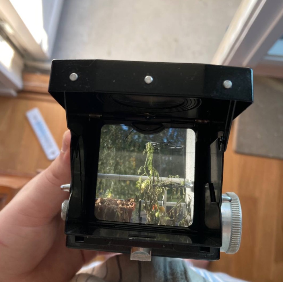 den har en förhållandevis ljus och tydlig sökare där bilden framgår väldigt tydligt. det kan ta ett tag att vänja sig vid att alla rörelser blir spegelvända, men det är ju någonting som gäller alla tlr-kameror. sökaren i bild är en annan ikoflex-modell från mitten av 1950-talet jag ärvde från min morfar. de skiljer sig inte på annat vis än att ikoflex 1 inte har några linjer eller ljusmätare. anledningen till att jag recenserar den äldre varianten och inte min morfars gamla följer av nästa stycke.